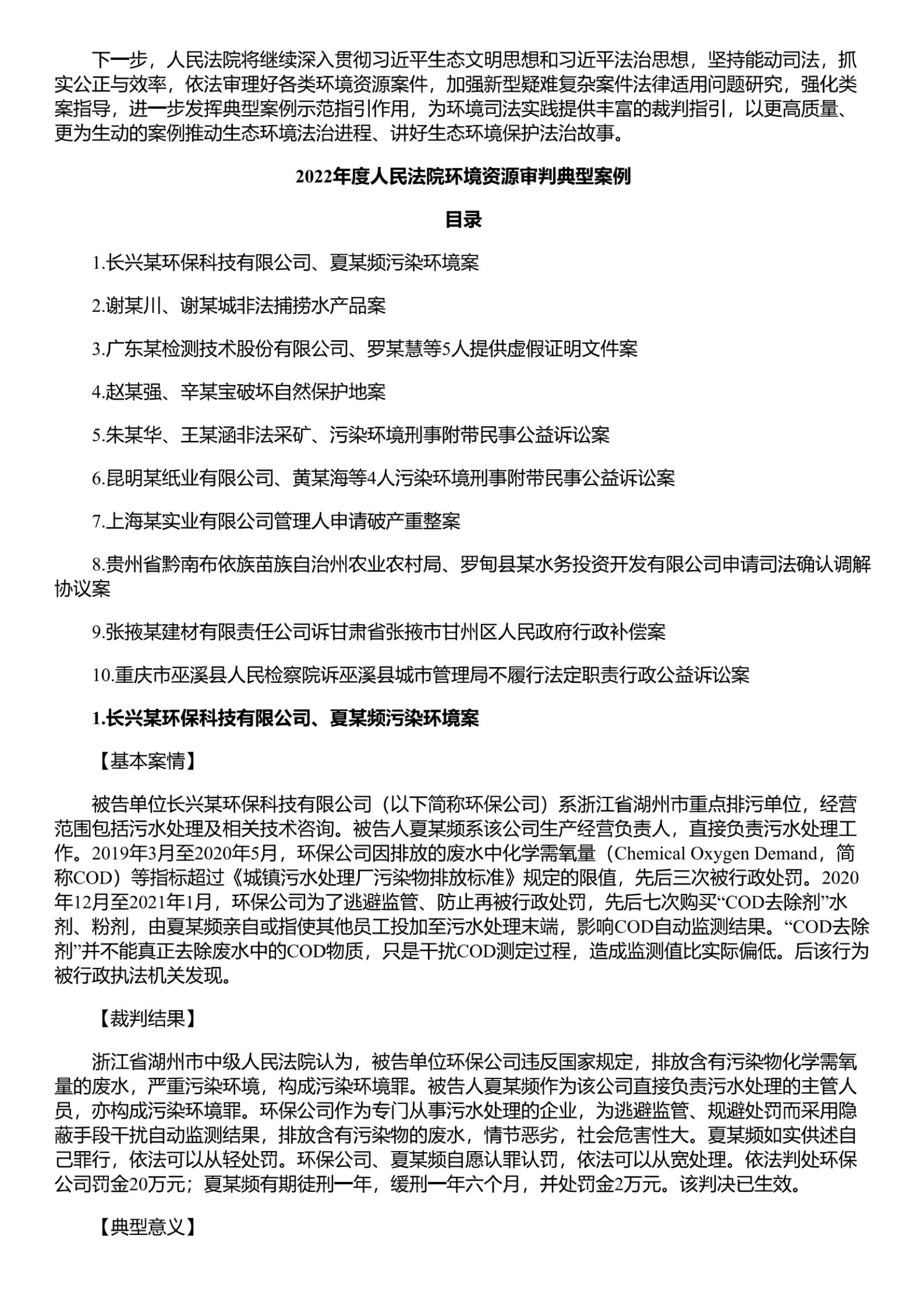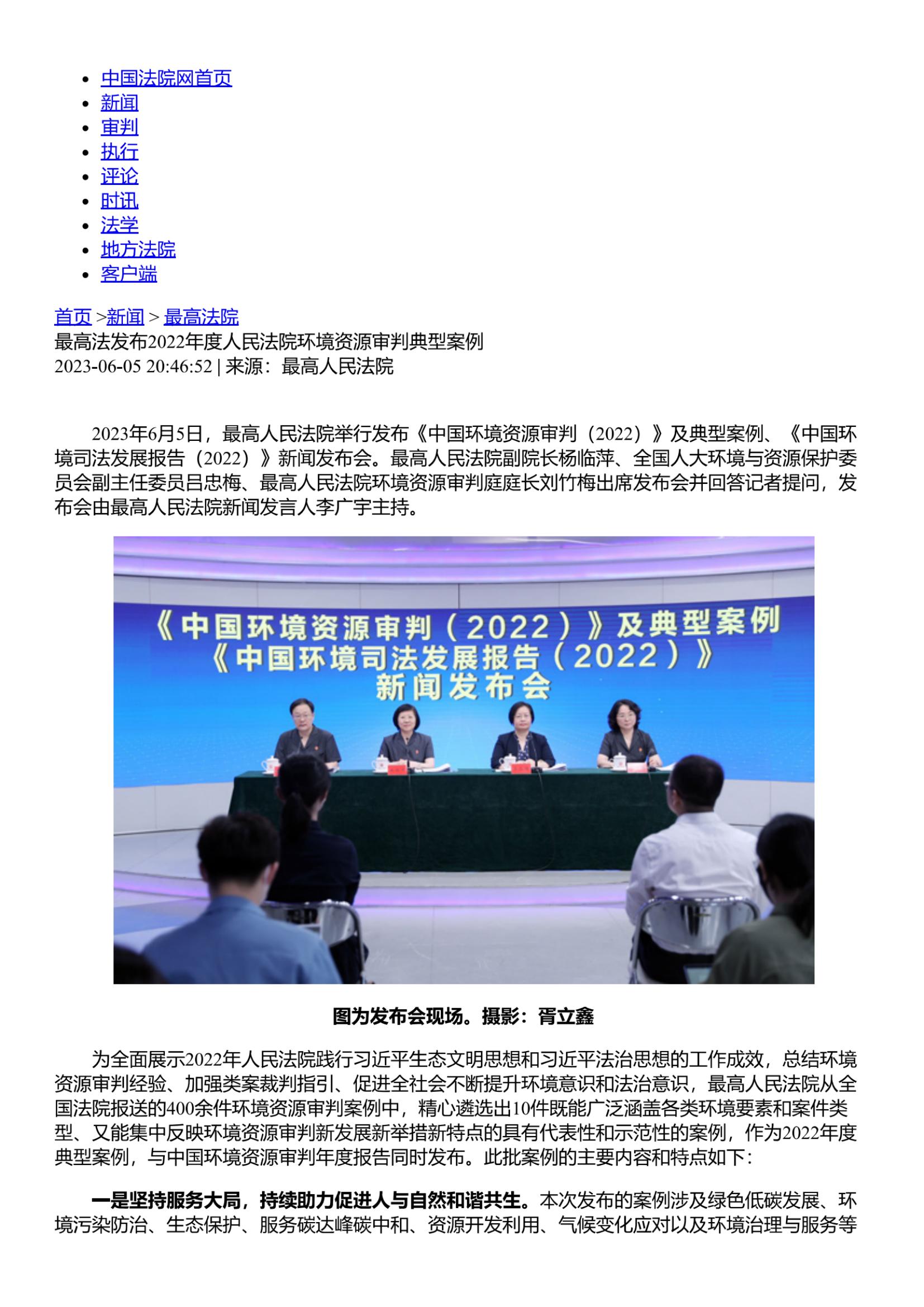 转发最高法发布2022年度人民法院环境资源审判典型案例-中国法院网